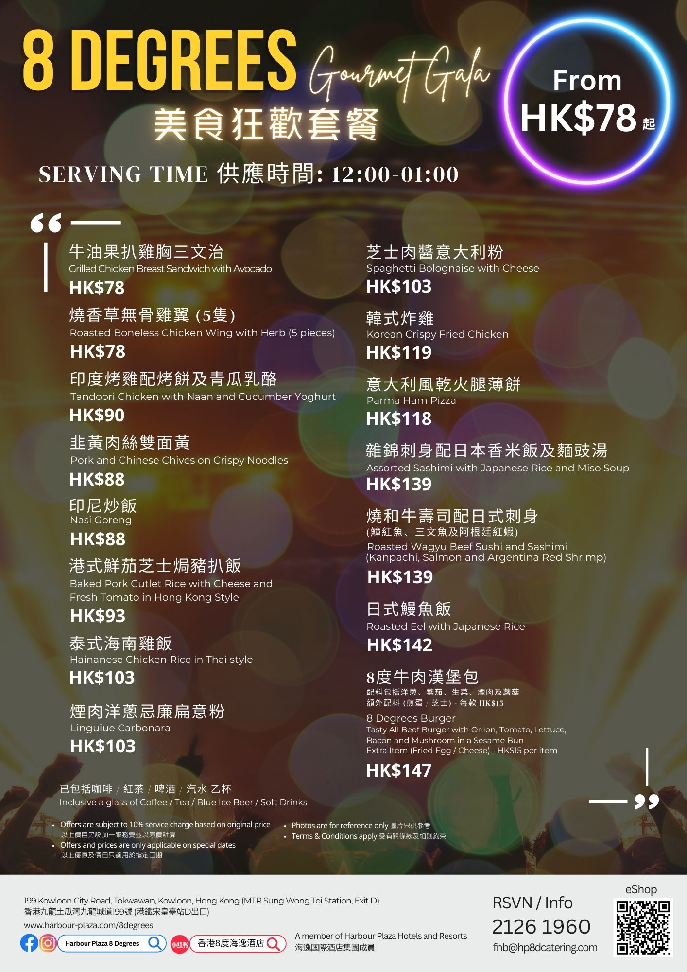 Special Price: From HK$78 with a glass of Coffee / Tea / Blue Ice Beer / Soft Drinks